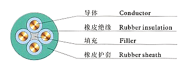 | 產(chǎn)品標(biāo)準(zhǔn)standard 本產(chǎn)品按GB12972-1991《礦用橡套軟電纜》、MT818-1999《煤礦用阻燃電纜》及Q/320282DCE037-2003標(biāo)準(zhǔn)生產(chǎn),同時(shí)還可根據(jù)用戶需要按國際電工委員會(huì)推薦標(biāo)準(zhǔn)IEC、英國標(biāo)準(zhǔn)、德國標(biāo)準(zhǔn)及美國標(biāo)準(zhǔn)生產(chǎn)。 The product is manufactured according to the standard 《Flexible rubber-sheathed cables for mining purposes》of GB12972-1991,《Flame retardant drade flexible rubber-sheathed cables for mining purposes》of MT818-1999, and Q/320282DCE037-2003, and the same time is also manufactured according to the standard of IEC、English、Germany and America. 適用范圍Applications 礦用橡套軟電纜適用于工頻額定電壓U0/U660/1140V及以下礦用動(dòng)力裝置用移動(dòng)敷設(shè)的電纜。 Flexible rubber-sheathed cables for mining purposes of suitable for mining purposes power device with moving installation and rated voltage up to and including 660/1140V. 使用特性O(shè)perating characteristics ● 工頻額定電壓U0/U為380/660V、660/1140V。 Rated power-frequency voltage U0/U:380/660V and 660/1140V。 ● 電纜導(dǎo)體的高允許工作溫度:65℃ Max. admissible operating temperature of the conductor:65℃ ● 電纜允許低的工作環(huán)境溫度為-35℃ Permissible long-term operating temperature: Lowest working temperature is :-35℃ ● 電纜彎曲半徑:The bending radius of cable D≤25mm.: ≥4D D>25mm.: ≥6D (D—Diameter of the cable). |