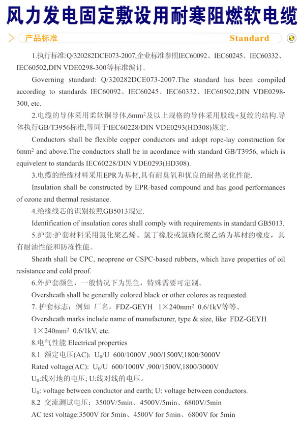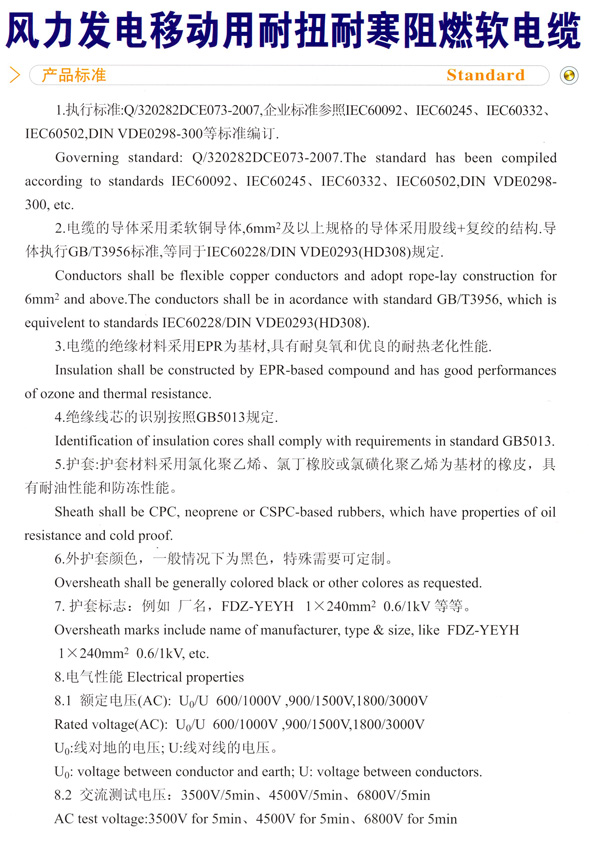 風力發(fā)電移動用耐扭耐寒阻燃軟電纜