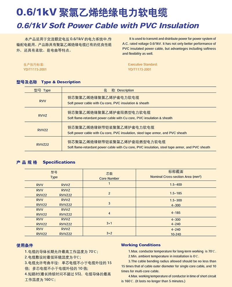 0.6/1KV聚氯乙烯J緣電力軟電纜